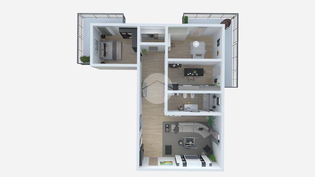 La doppia esposizione e i due balconi angolari garantiscono una luminosità naturale durante tutto il giorno.