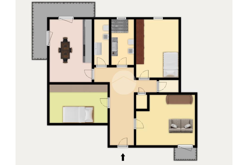 Gli ambienti interni sono distribuiti in modo funzionale: l’ingresso apre su un soggiorno luminoso, seguito dalla camera da letto, dalla cameretta, dalla cucina e dai doppi servizi. Sono inoltre presenti due ripostigli, uno dei quali dotato di autoclave. Attualmente l’appartamento è arredato con tre camere da letto, configurazione perfetta per continuare l’affitto delle singole stanze, già attivo e ben organizzato.